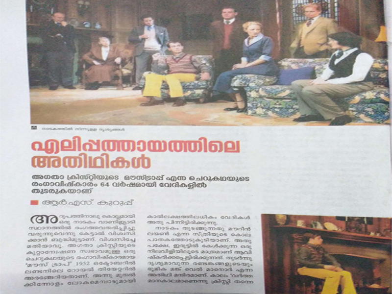 അഗത ക്രിസ്റ്റിയുടെ മൗസ് ട്രാപ് എന്ന ചെറു കഥയുടെ രംഗാവിഷ്ക്കാരം 64 വർഷമായി വേദികളിൽ തുടരുകയാണ്.64 വർഷമായി ഒരു നാടകം വാണിജ്യാടിസ്ഥാനത്തിൽ രംഗത് അവതരിപ്പിച്ചു വരുന്നു എന്ന് കേട്ടാൽ വിശ്വസിക്കാൻ ബുദ്ധിമുട്ടാണ്