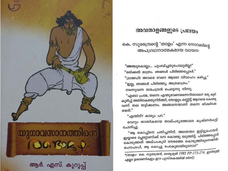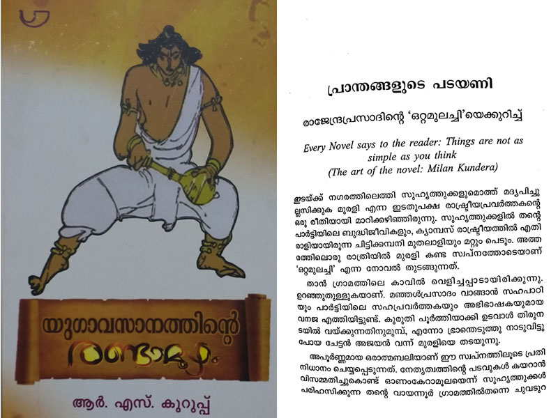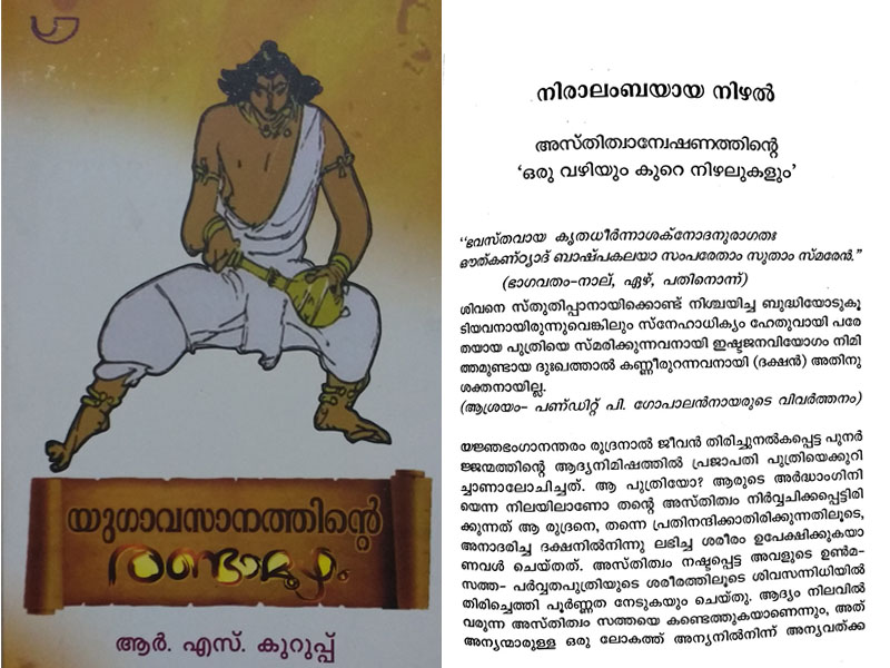 കെ . സുരേന്ദ്രന്റെ താളം ,സി.രാധാകൃഷ്ണന്റെ നിഴല്പാടുകൾ,എം.ടി . വാസുദേവൻ നായരുടെ രണ്ടാമൂഴം രാജേന്ദ്ര പ്രസാദിന്റെ ഒറ്റമുലച്ചി,രാജലക്ഷ്മിയുടെ ഒരു വഴിയും കുറെ നിഴലുകളും,ഓ.വി. വിജയൻറെ നോവലുകളിലെ ആത്മീയത ,പാറ പ്പുറത്തിന്റെ അറനാഴികനേരം എന്നിവയാണ് ഈ ലേഖനസമാഹാരത്തിന്റെ ഉള്ളടക്കം .