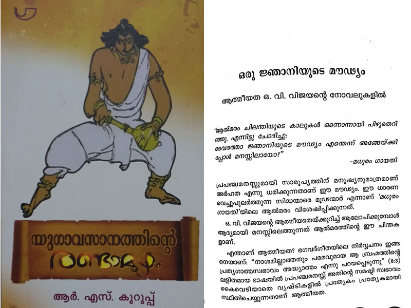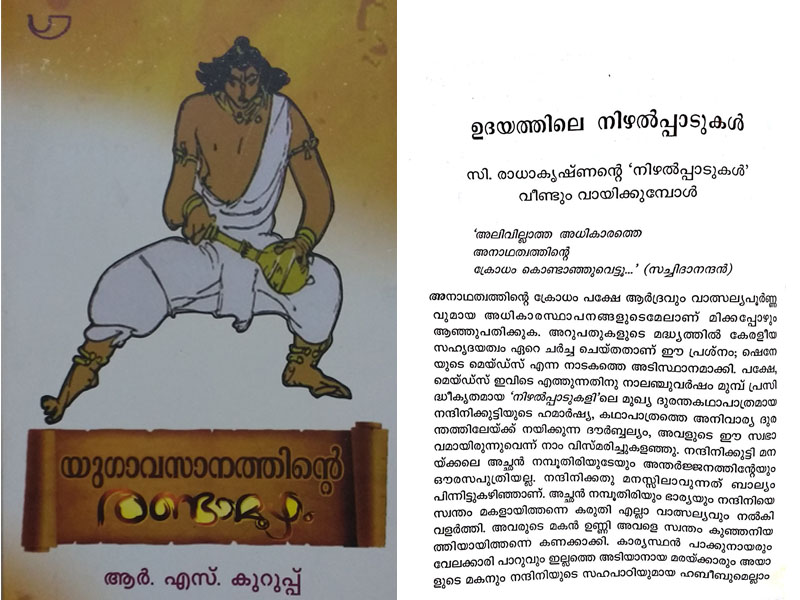 കെ . സുരേന്ദ്രന്റെ താളം ,സി.രാധാകൃഷ്ണന്റെ നിഴല്പാടുകൾ,എം.ടി . വാസുദേവൻ നായരുടെ രണ്ടാമൂഴം രാജേന്ദ്ര പ്രസാദിന്റെ ഒറ്റമുലച്ചി,രാജലക്ഷ്മിയുടെ ഒരു വഴിയും കുറെ നിഴലുകളും,ഓ.വി. വിജയൻറെ നോവലുകളിലെ ആത്മീയത ,പാറ പ്പുറത്തിന്റെ അറനാഴികനേരം എന്നിവയാണ് ഈ ലേഖനസമാഹാരത്തിന്റെ ഉള്ളടക്കം .